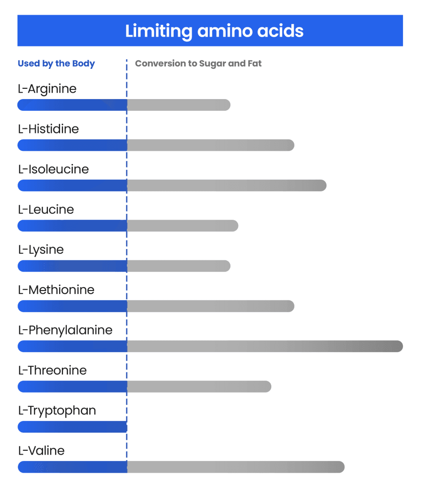 The quality of a protein depends on how balanced its amino acid profile is. If an essential amino acid is missing or present in insufficient quantities, the body cannot use the full potential of the protein. This limiting component is known as a “limiting amino acid“.