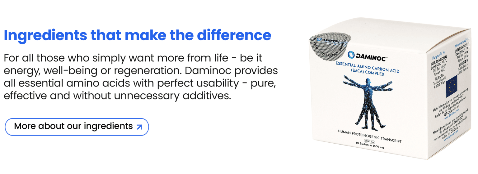 The essential amino acids in Daminoc are immediately available. Your body saves energy, avoids losses and uses the building blocks directly for regeneration, energy and metabolic processes.
