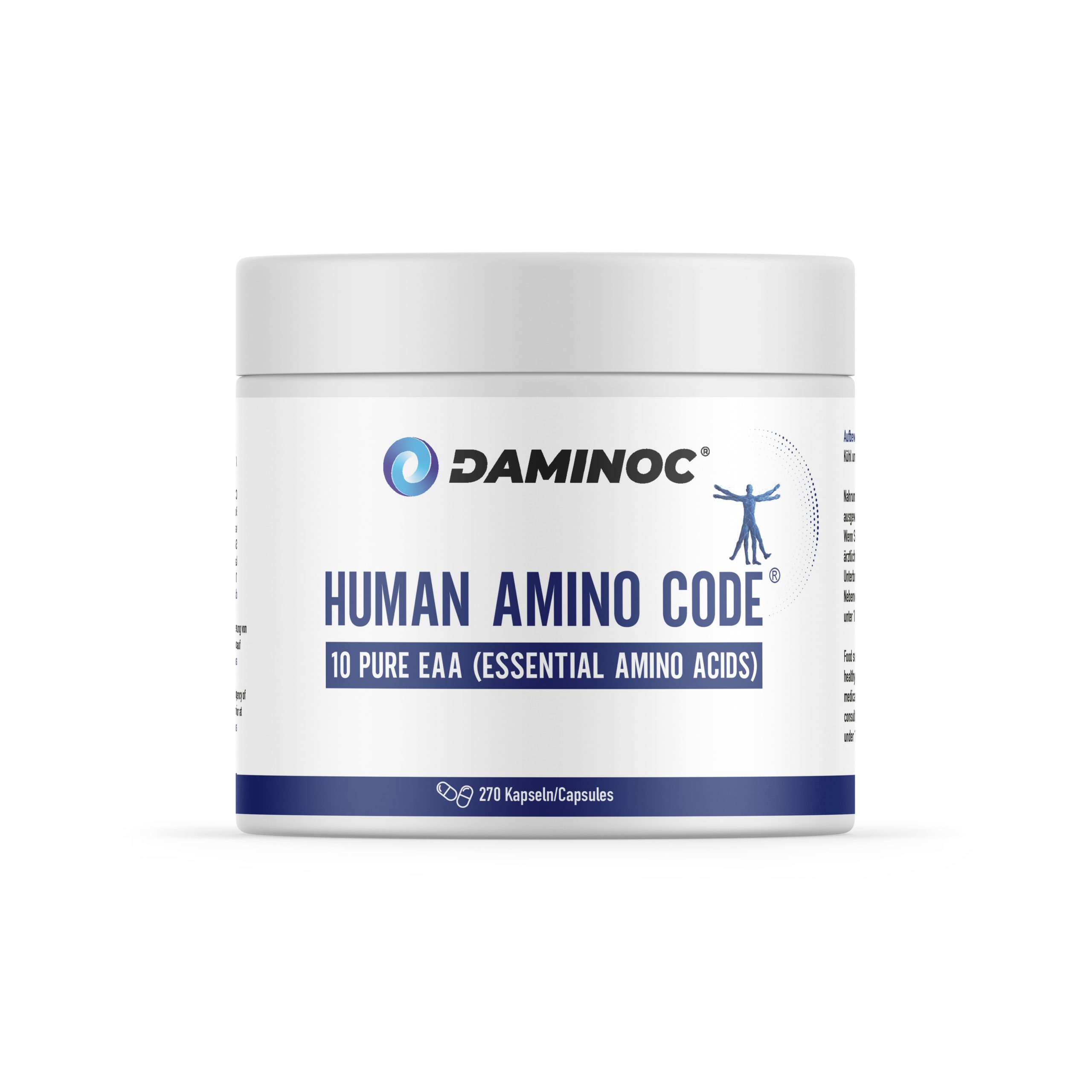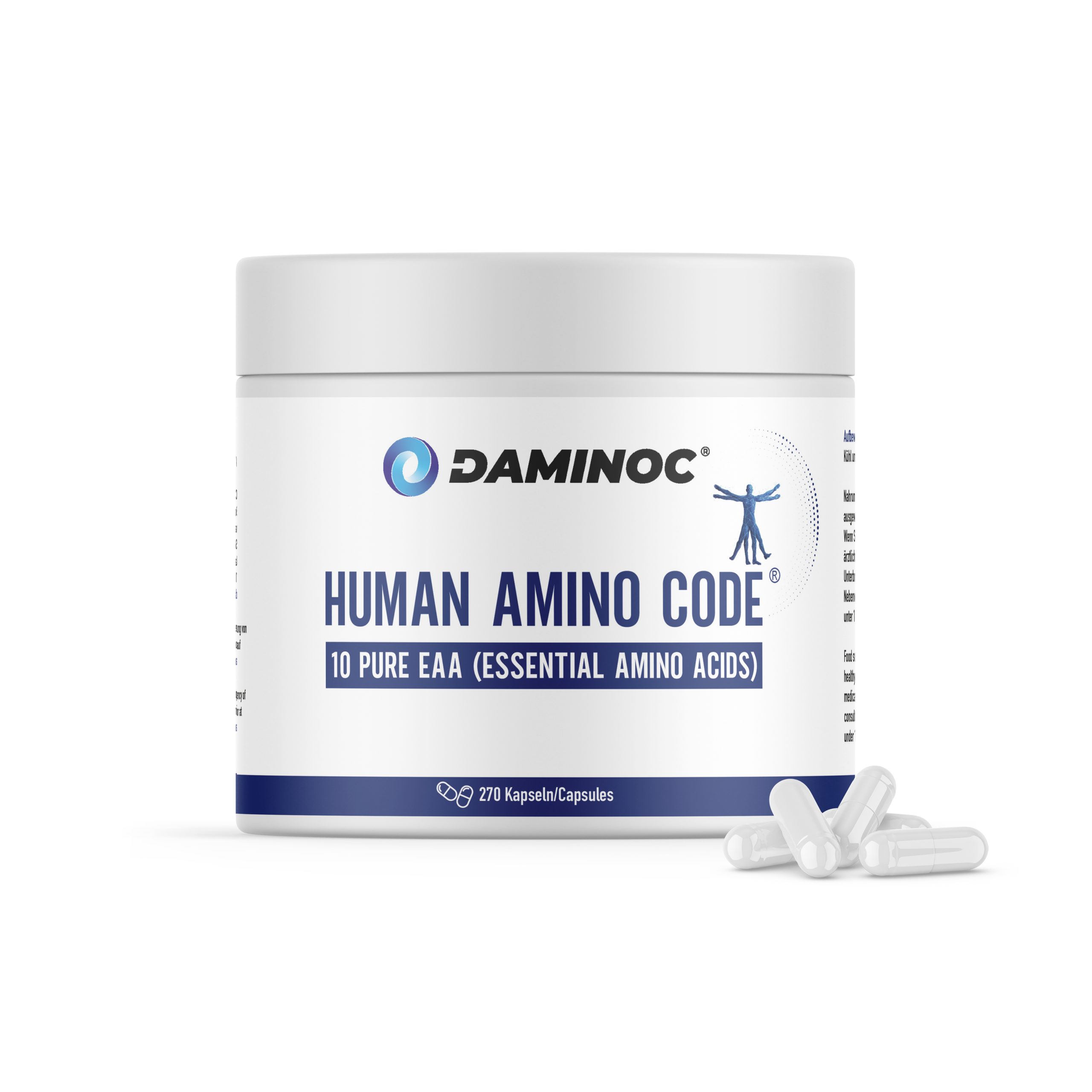 Daminoc® vereint sie in einem Verhältnis, das dem menschlichen Aminosäureprofil funktional entspricht – für eine nahezu vollständige Proteinsynthese ohne Kalorien, Verdauungsbelastung oder Stickstoffüberschuss.