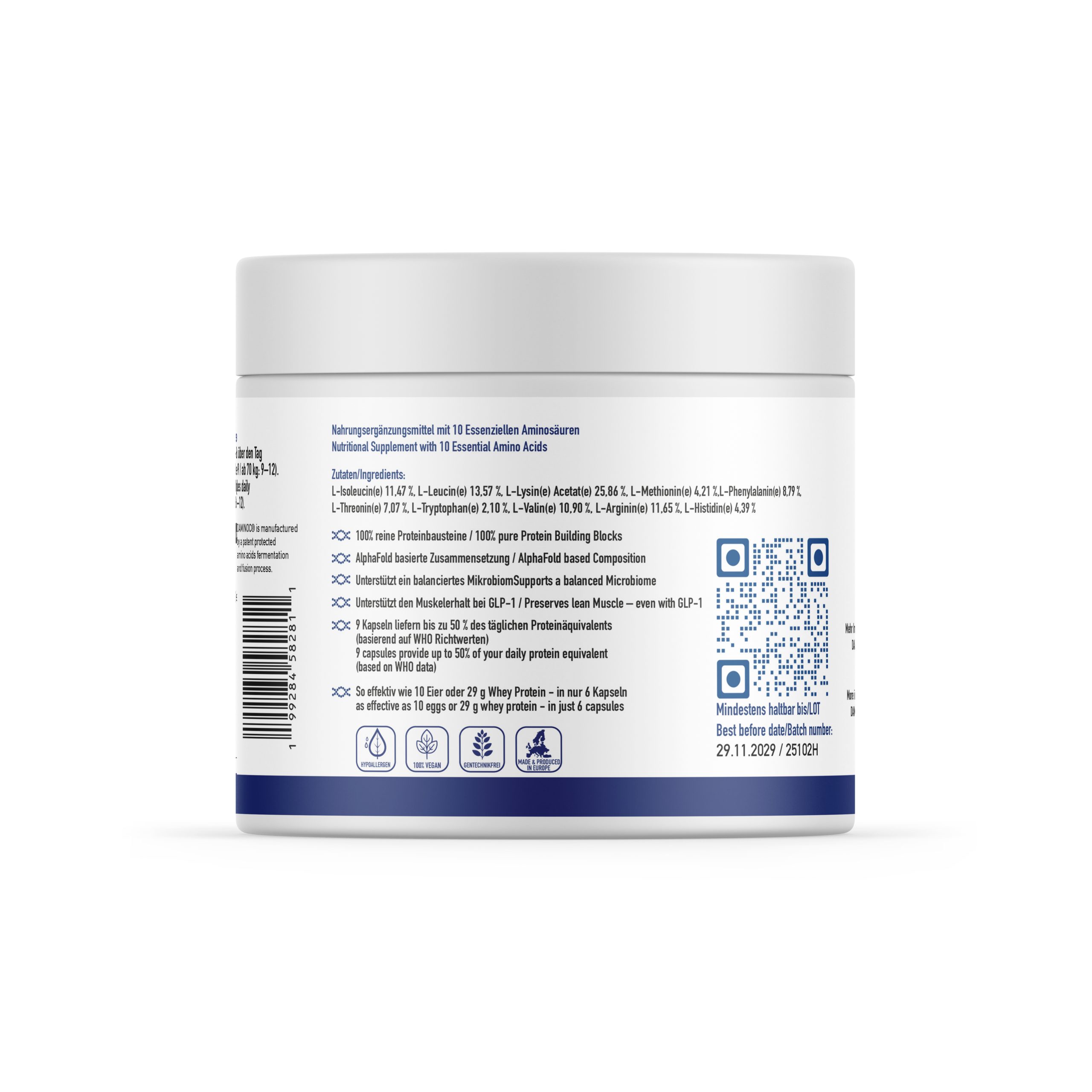 Jede Kapsel liefert die zehn essentiellen Aminosäuren (EAA), die der Körper nicht selbst herstellen kann.
